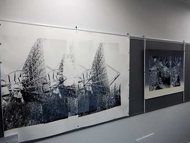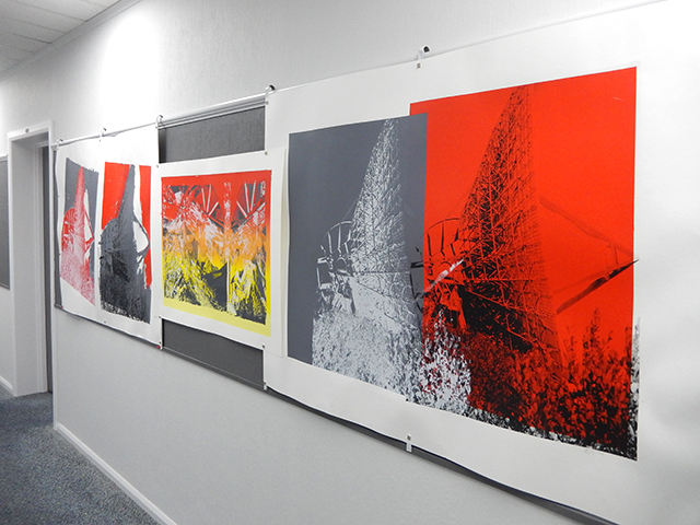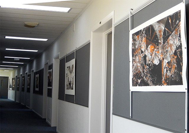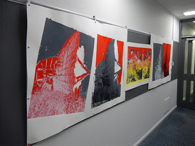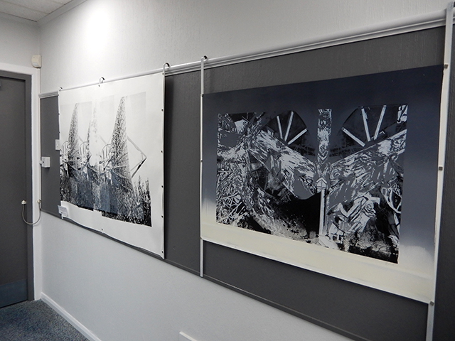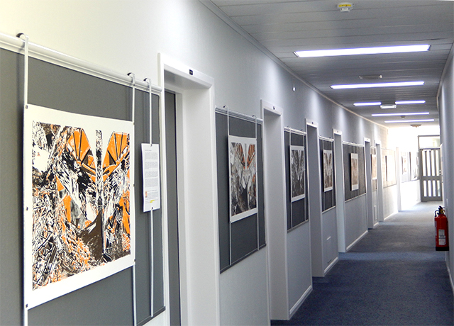 Part of Goonhilly's long curved corridor which holds part of the display of site specific work.
