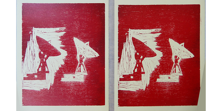 WOODCUT 3 and 4. 'West Meets East'.